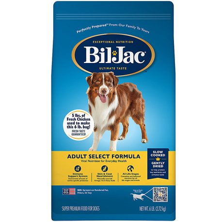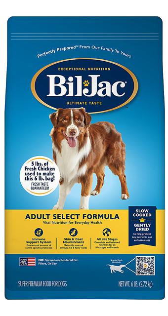 Bil-Jacセレクトアダルトは成犬に必要な栄養素がバランス良く配合されています。 Bil-Jacセレクトアダルトをあなたの愛犬に与えれば、そのまま一番良い栄養バランスで一番フレッシュなドッグフードを与えていることになります。